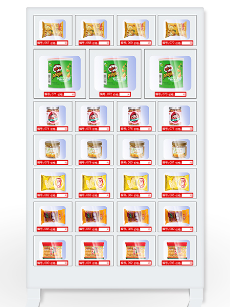 它適合各類商品的售賣,無論是沒有固定包裝的還是站不穩的,通通都能精準出貨,每個格子都有獨立的門,結構簡單制造成本低。