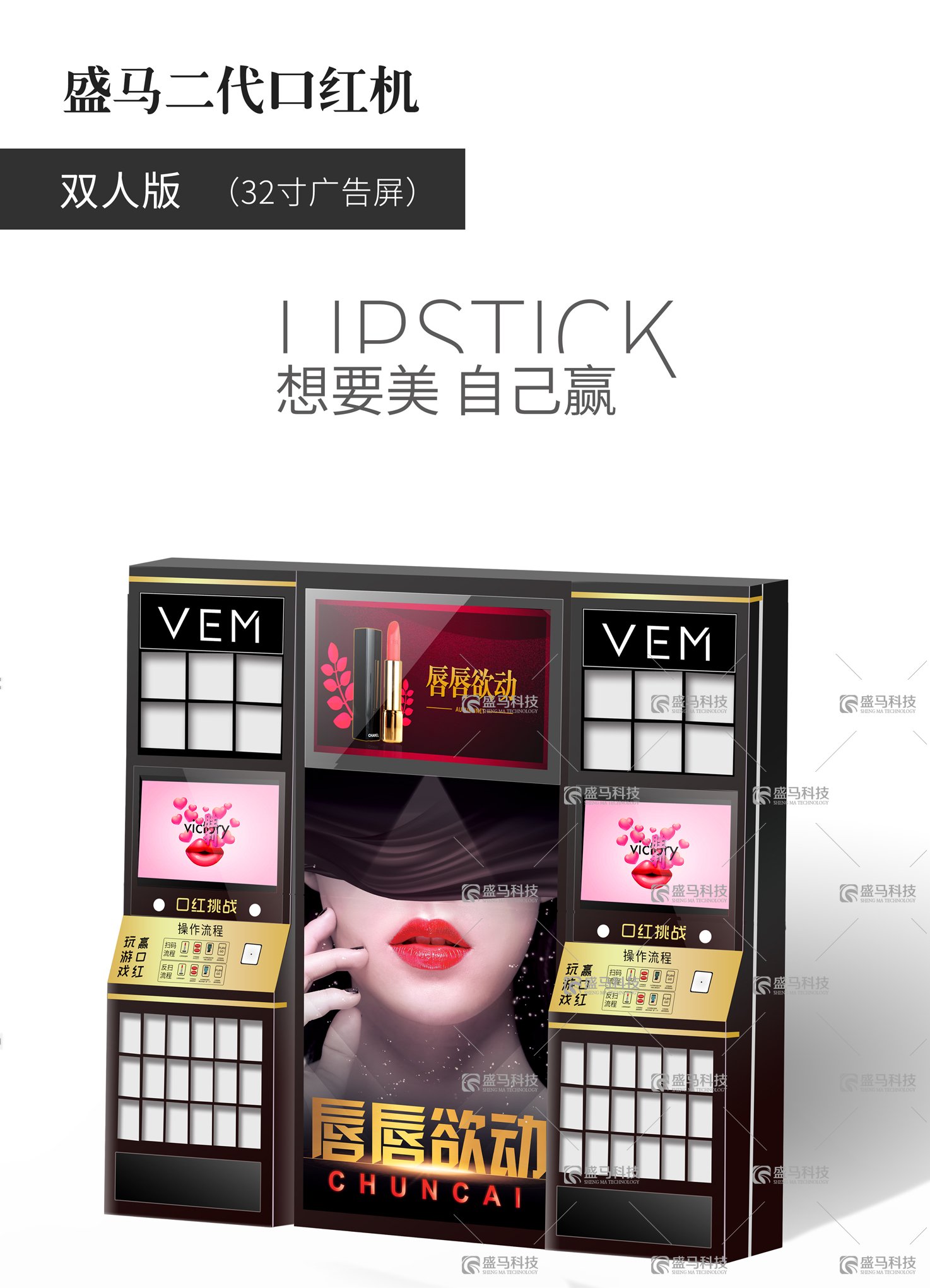 盛馬科技負責人深深知道,好的產品要不斷創新,才可能一直占領市場,所以投入大量科研資金,在最短時間內對口紅機升級換代,生產出盛馬二代口紅機,口紅機外觀,是給消費者的第一印象。而第一印象,很大程度上決定玩家是否去體驗。盛馬二代口紅機外觀造型設計有美感,而且機箱用五金材質打造,恰當的燈帶燈光為機臺增添魅力,與機臺的主打元素口紅,有很好的融合。