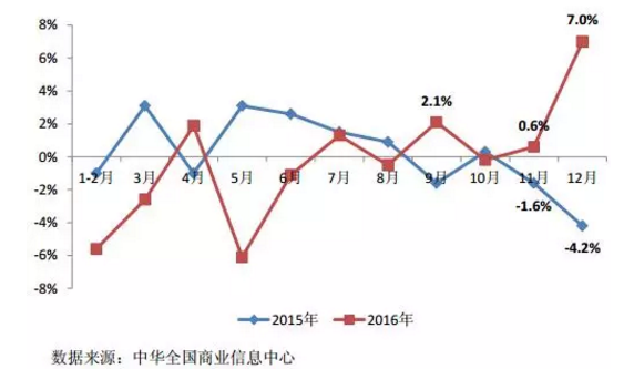 2016年,面對錯綜復雜的國內外經濟環境,我國經濟結構調整加快,供給側結構性改革初見成效,經濟增長新動力不斷積聚,國民經濟穩中趨緩,穩中向好,居民收入穩步增長,消費升級進程不斷加快,市場呈現出“新消費、新零售和新生態”特征。預測,2017年,我國全年社會消費品零售總額增速仍將保持在10%左右,比同期GDP增速高出3個百分點。